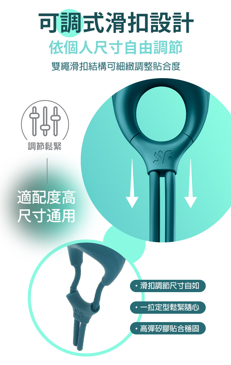 可調節環設計:滑扣式結構,鬆緊隨心,一拉即定型。
