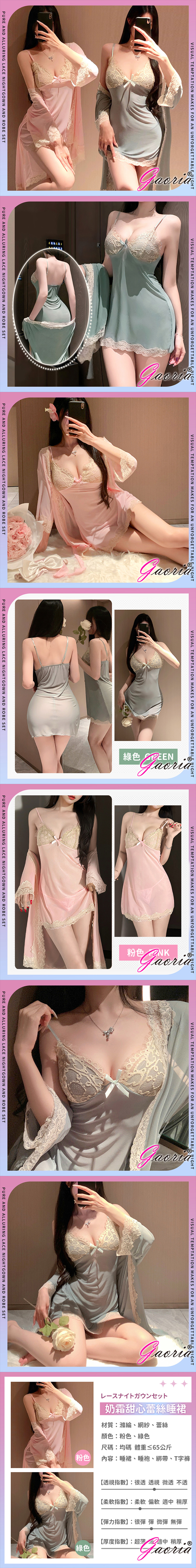 Gaoria|奶霜甜心 純欲蕾絲睡裙外袍套裝 綠
